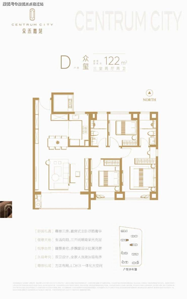 在户型设计上,经过充分的市场调研,深度剖析市民群众对空间功能的需求,并着眼未来十年生活变量的空间需求,精研兼备尺度感、舒适度、功能性、个性化和成长性的户型。创新设计建面约94㎡-122㎡宽景三房、四房,并不吝成本臻选国际知名家装家电品牌,以全系装标打造精质奢适的高品质空间。