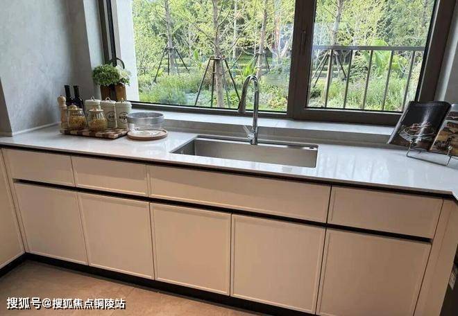 同时厨房也附赠飘窗,将飘窗台面与橱柜一体化设计,做为了水槽区域,极大的提高了厨房空间的实用面积!