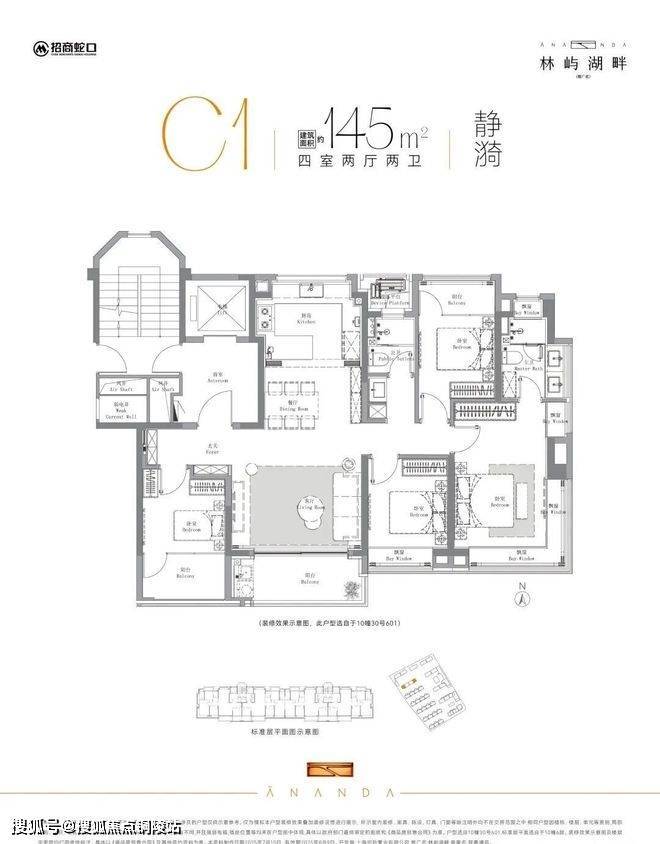 145户型分别位于10号楼和12号楼,双楼王位置,10号楼南侧为低密别墅,南向采光和视野极佳,12号楼南侧正对社区中轴线及室外水景!