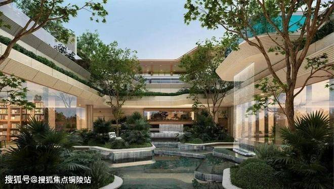 通过多层次、立体化的景观营造,创造一座“漂浮的绿洲”,九重层次下沉庭院,区域悬浮泳池+4.3米飞瀑设计,塑造极致度假感受,丰富的视觉奇观。