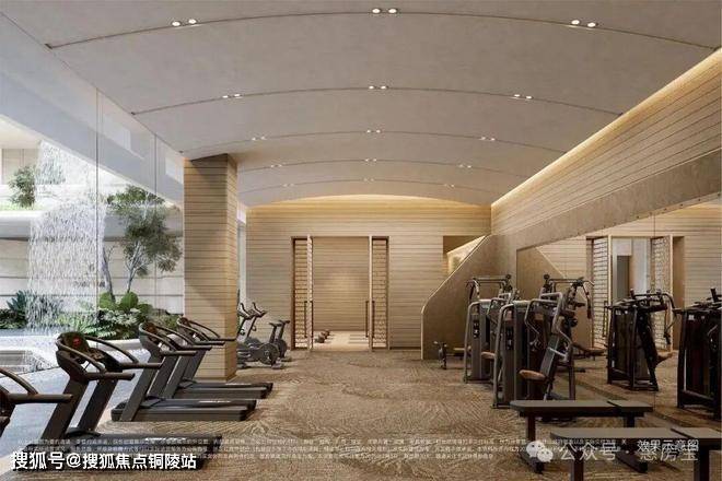 区域首创国标壁球馆、飞瀑园景健身房、嵌入式景观书吧等,整体统一化仿树榴木纹贴面,还原内外统一的高级度假酒店质感。