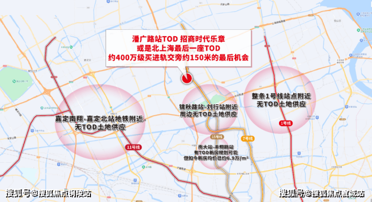 纵观整个北上海的所有400-600万级置业地的轨交站点,还有条件建造TOD、建造直线约150米进站轨交盘的土地,寥寥无几甚至不会再有。
