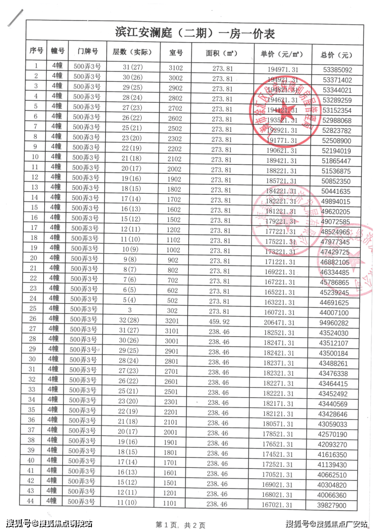 一房一价表