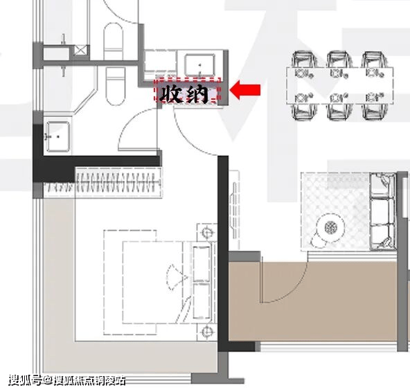 类似户型一般做到主卧套房问题不大,但在衣柜、卫生间之外,再多出一个收纳空间,则十分难得。