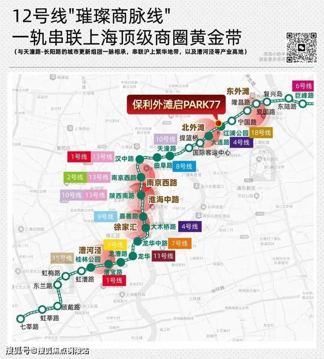 从项目出发到徐汇滨江的11站路,足足有11站是换乘站点,无论是徐汇滨江的艺术气息、衡复风貌区的梧桐光影、南京西路的高端商业、苏河湾的新旧融合、北外滩的邮轮码头、杨浦滨江的工业风步道,都能通过12号线直接衔接。