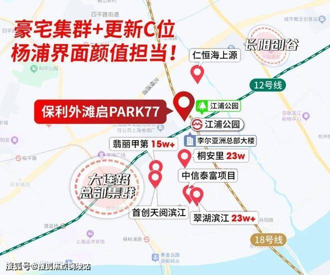【保利外滩启】PARK77售楼处电话:400-9699-334✨【官方认证】✅✅✅项目由国企保利开放;位于杨浦内环内江浦公园旁,项目东至江浦路、南至长阳路、西至长阳实验学校、北至居民小区和规划公共绿地。作为“外滩序”升级之作!将顶级酒店的度假美学与生活艺术完美转译为当代人居解决方案。