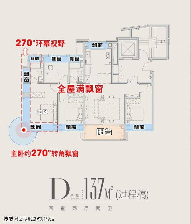 纵观市中心新房,百平米户型配双270°飘窗的实属罕见;即便是大户型常见的同类设计,项目飘窗也以更阔尺度与视野,重新定义“窗景”标准!