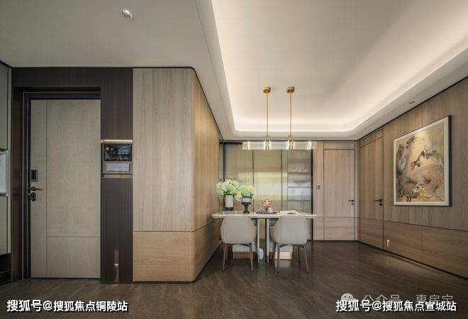 与常规新房室内没有门与墙的生硬拼凑感不同,江湾金茂府通过大量木饰面、隐藏门等细节,形成统一的设计语言,色彩与材质搭配协调统一,尽显整体美感!