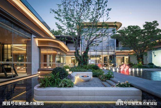 蓝翡翠水景围着下沉庭院,中间有蜿蜒的挑台连着瀑布,顶层还有供业主小聚的女王花厅,实现了美感与功能的完美融合。