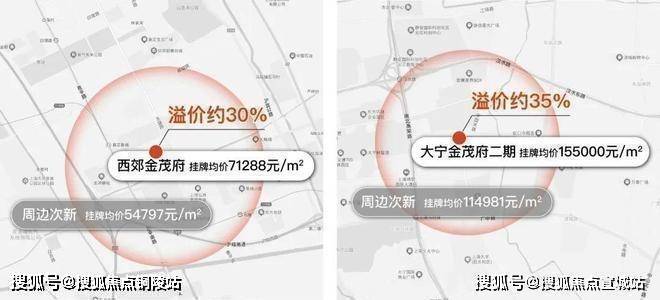 大宁金茂府二期挂牌约15.5万/㎡,周边次新整体挂牌约11.5万/㎡,金茂府有约35%溢价;