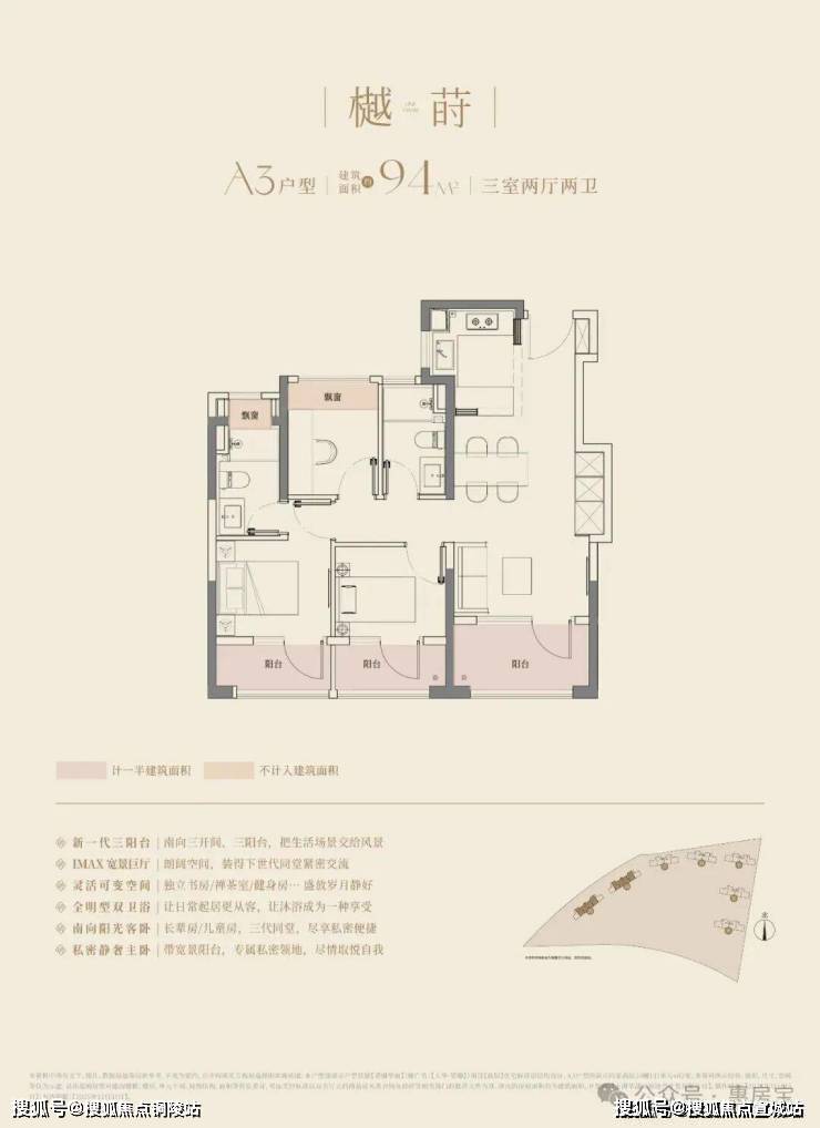 经典动静分离户型,预留分户“S”墙设计,三开间朝南+三阳台,)阳合仅计算一半建筑面积,北次卧附赠飘窗,同时飘窗两侧无墙垛,整体利用率会更高!