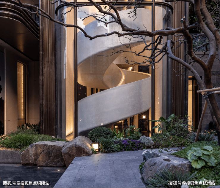 而实景首开的近2000㎡下沉庭院,作为“园林灵魂”,漫步此间,你会看见:乌金原石围合的“玉扣绿岛”上,低调静放着团队自“天下玉源”河南南阳历时遴选而来,近7000年的“国玉”独山璞玉,与山野林木共此氤氲灵气,尽显东方温润;从诗经走出来的近11m高参天乌桕,则再现古诗中所描述的“秋林城郭画图中,乌桕千株照眼红“的诗意;采用约6.7m幻影蓝奢石打造的“叠级水瀑”跌水台,池底以呈现天然墨绿色泽的蓝金刚石铺就,映水之澄明,境之悠远;连台阶都采用了“黑色花岗岩之王”安哥拉黑整石,沿云梯而上,让人返璞内心东方......