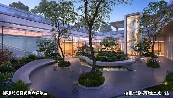 穿过会所,便步入层层叠水、绿意环绕的下沉庭院。