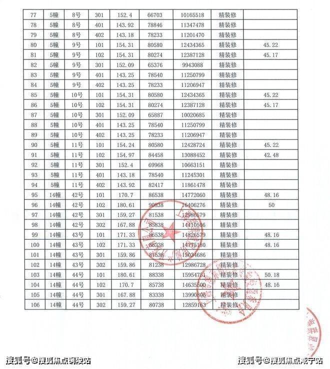 上期一房一价表如下: