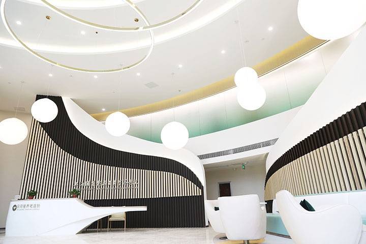 设施特色:大面积采用“合”(即单一元素连续组合融于一体)与“木”两种元素,形成空间的和睦;房间配无线网络、空调、电视、电话、多功能床(床位之间增加软隔断)、冰箱、独立卫浴、热水淋浴、衣柜床上用品、饮水设备、安全设施、无障碍设施、紧急呼叫系统、GPS定位、门禁系统、高清监控系统、医用特殊电梯、防滑地板。
