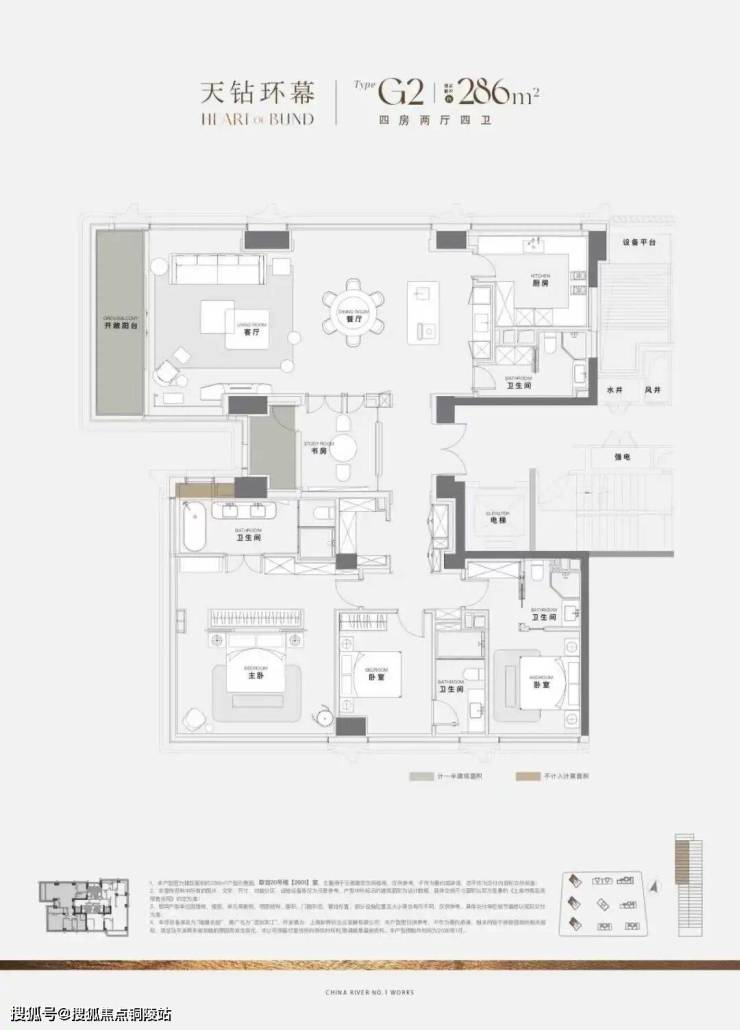 作为本次推售中面积最大的户型,286㎡户型均分布于中高区。它的存在就是为了定义“滨江终极生活”: