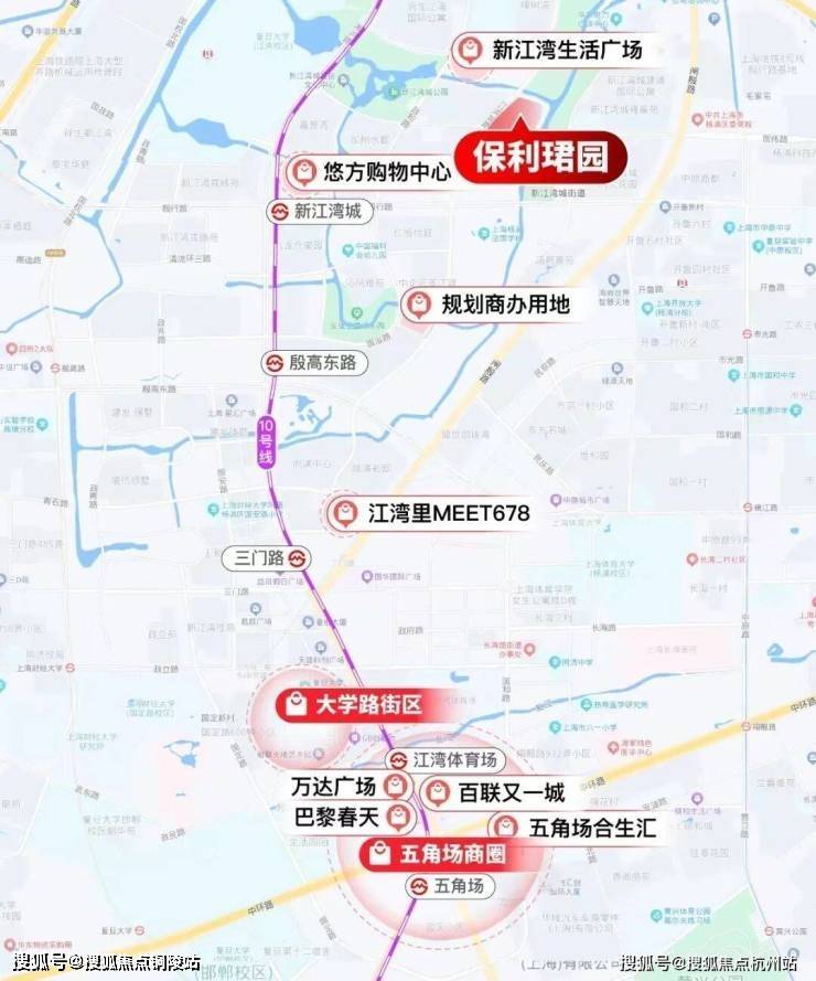 项目周边汇聚五大商业体,距离项目200m就是新江湾生活广场,约1km就是悠方购物广场,约2km是江湾里MEET678,约3km是大学路街区,3站地铁就可以直达五角场商圈:合生汇、万达广场、百联,可以满足日常所需,实现了居住与通勤的平衡。