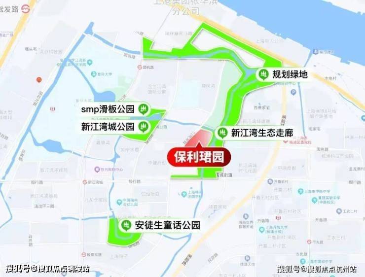新江湾城拥有四大城市公园,其中项目西侧有约7.35万公顷的新江湾城公园,SMP滑板公园,安徒生公园,项目北侧和东侧是约24万方的生态走廊,还有9条天然水系,聚集了200多种鸟类。