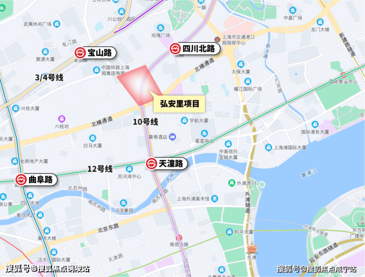 交通配套:项目周边有3、4、10、12号线四条轨交,自驾则可以通过北横通道和外滩隧道快速抵达城市各个地标。