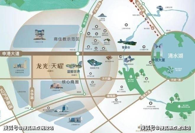 【龙光·天曜】北面的主干道申港大道仿佛临港“ 延安高架 ”,自西向东串联起百米高度的蓝鲸世界、临港行政中心、约200米的临港中银金融中心,以及滴水湖东侧约480米滨海地标,“一轴多芯”形成临港独一无二的滨海城市天际线.