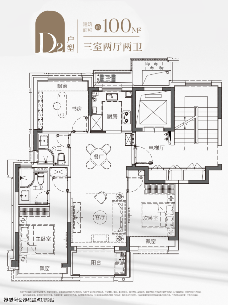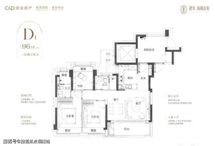 建面约96㎡3房2厅2卫