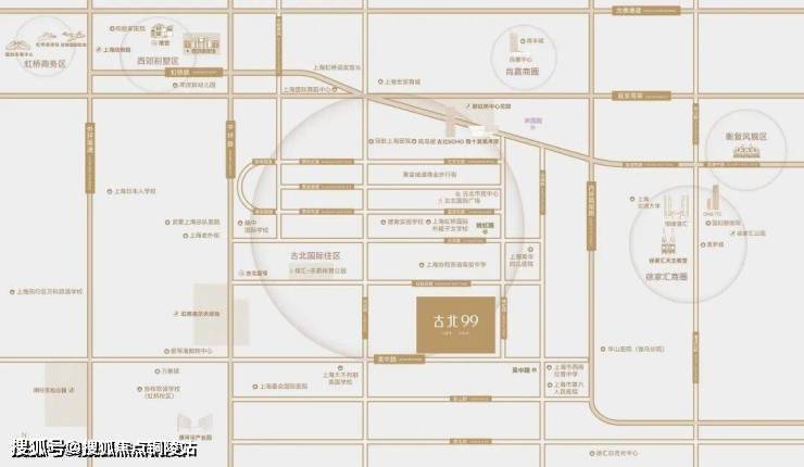 1-1.5公里步行圈:古北1699广场、黄金城道步行街、高岛屋、古北市民中心、体汇+名都体育公园、虹桥高尔夫球场、古北SOHO、程十发美术馆;2.5-3.5公里生活/商务圈:尚嘉中心、南丰城、老外街、世贸商城、徐家汇恒隆、新鸿基ITC、爱琴海购物中心、万象城、仙霞网球中心、西郊宾馆、虹桥迎宾馆、漕河泾开发区;