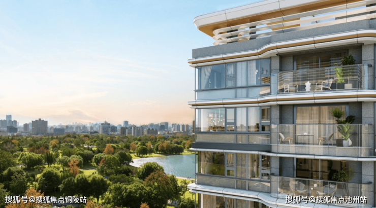 翎翠滨江采用张力弧线立面,18 道转折截面、40 公分大出挑,呼应滨江韵律;大面积玻璃幕墙搭配高窗墙比与开阔楼间距,日均超6小时日照,公园与城市景观尽收眼底。