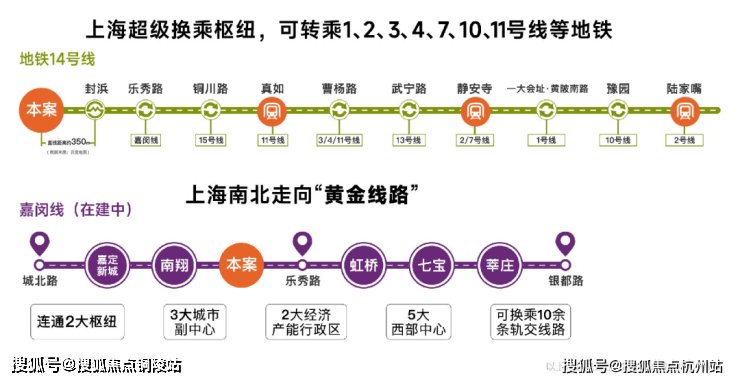 交通能级不断跃升:14号线和嘉闵线(在建中)双轨交汇,步行约200米14号线地铁口,14号线为高能级地铁线,5站普陀,30分钟直达静安,且始发有座,出行舒适;黄金走廊嘉闵线加速建设,约3站虹桥枢纽,未来可速达七宝、徐家汇、莘庄等核心区域。项目周边开泰路即将建成,绿野谷二期路段、骏达路、童家桥路、昌瑞路、涟澜路已启动建设,预计2026年建成。