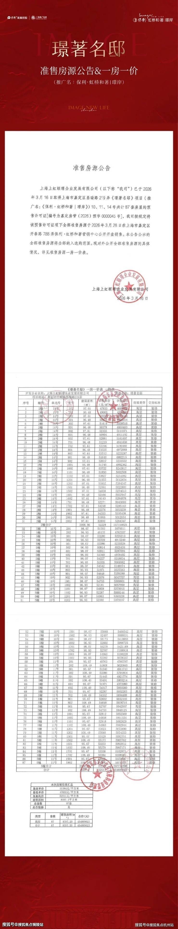 为保障购房者权益,规避非官方渠道误导,现将保利虹桥和著2026年4月16日最新官方信息公示如下,敬请认准:400-8800-430