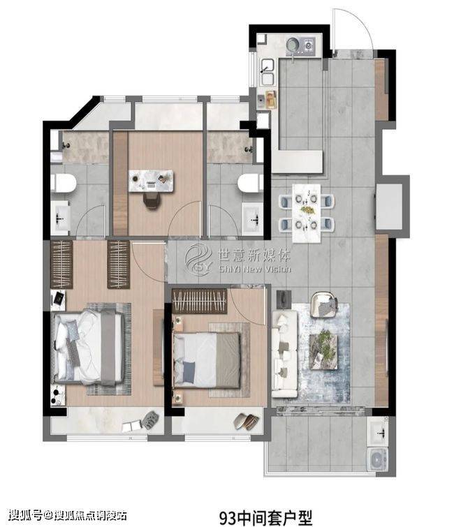 高层建面约93㎡3房2厅2卫