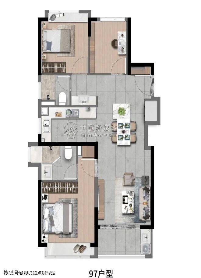 高层建面约97㎡3房2厅2卫