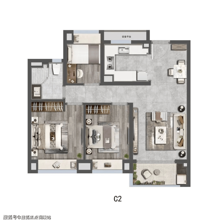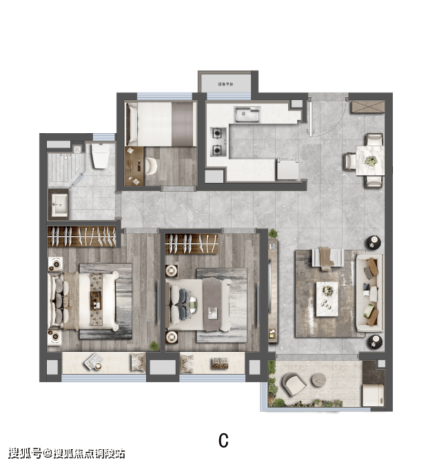 建面约88㎡三房