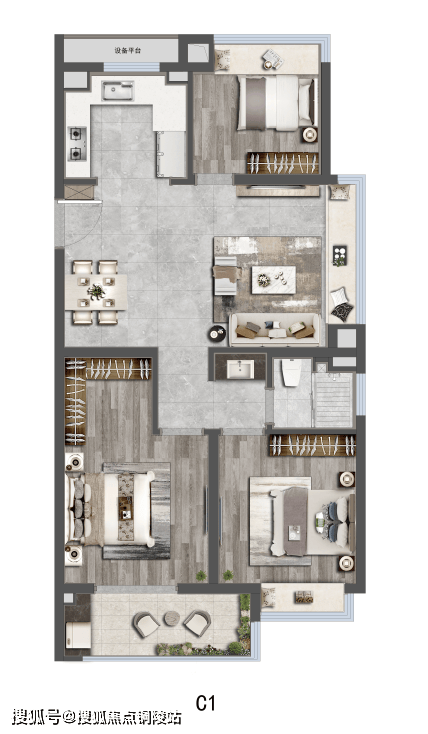 社区方面,项目打造全龄段,全维度活力健康住区,以“两轴一心、一环五区”园林景观规制约7500㎡中央景观,高配约600米环形健身步道。