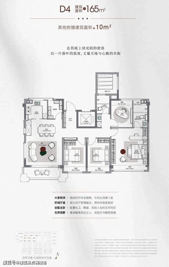 其它细节也非常到位,独立电梯入户+超大玄关空间+四房配置,给足别墅生活的仪式感。