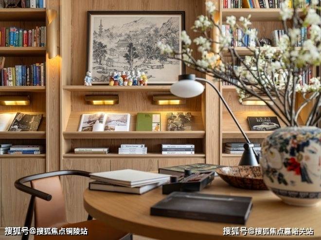 书房色调沉稳大气,精心设计的柔和灯光突显书香气韵,吸引人们长久驻足,于宁静的氛围中品味知识的力量。