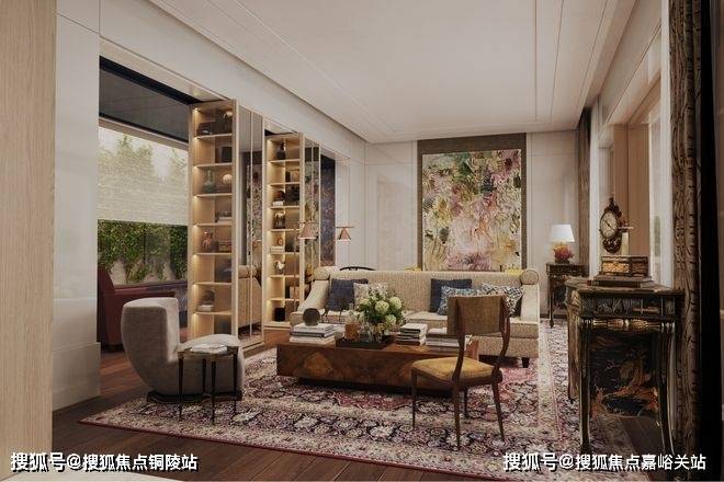 ✨天潼里 198官方售楼处电话:400-8080-420正式的大沙发区域,灵活散座区域,家具注重收藏种类多样性,中式圈椅,西式小沙发,灵活移动,根据需求可聚可散。手工编织的复古羊毛波斯地毯,用植物和矿物天然染料来进行染色,拥有了抗衡时间侵蚀的美,更增加了收藏的丰富性,是高品味的体现。✨天潼里 198官方售楼处电话:400-8080-420