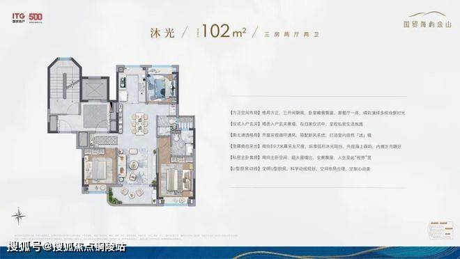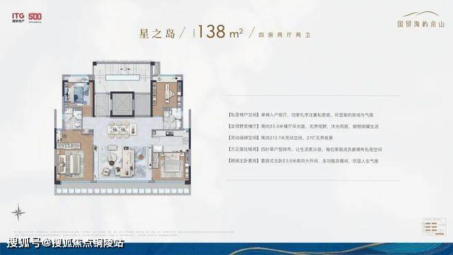 市面上大多百平小三房,都是“伪”三房,实际使用起来空间十分局促。国贸海屿佘山售楼处电话:400-9699-334✨【官方认证】✅✅✅户型设计优点:客厅阳台约270度采光体系+南向双飘窗+北房间也能够作成卧室,无连廊的飞机户型,整体的得房率做到了78-80%。