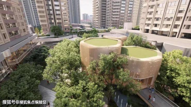 绿野街区:约45度角贯穿的街区,充分将中兴公园的自然引入中心广场,打造游弋、休憩、社交式中央静谧活动区,中央广场有三个自然亲切的树屋,共同形成一个开放且亲密的城市打卡点、自然栖息点。