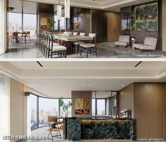 由LSD大师设计团队打造的样板间,在装修方面可谓诚意满满,从地面到墙面到壁龛都是石材,提升居住整体的格调,配置了十件套厨房家电,甚至酒柜;南向3个卧室全套房,更有270°弧形天际窗景,电动窗、独立式浴缸…..