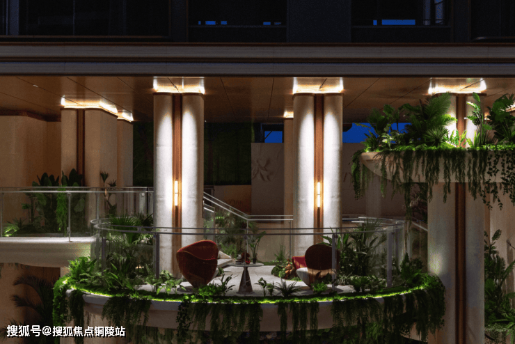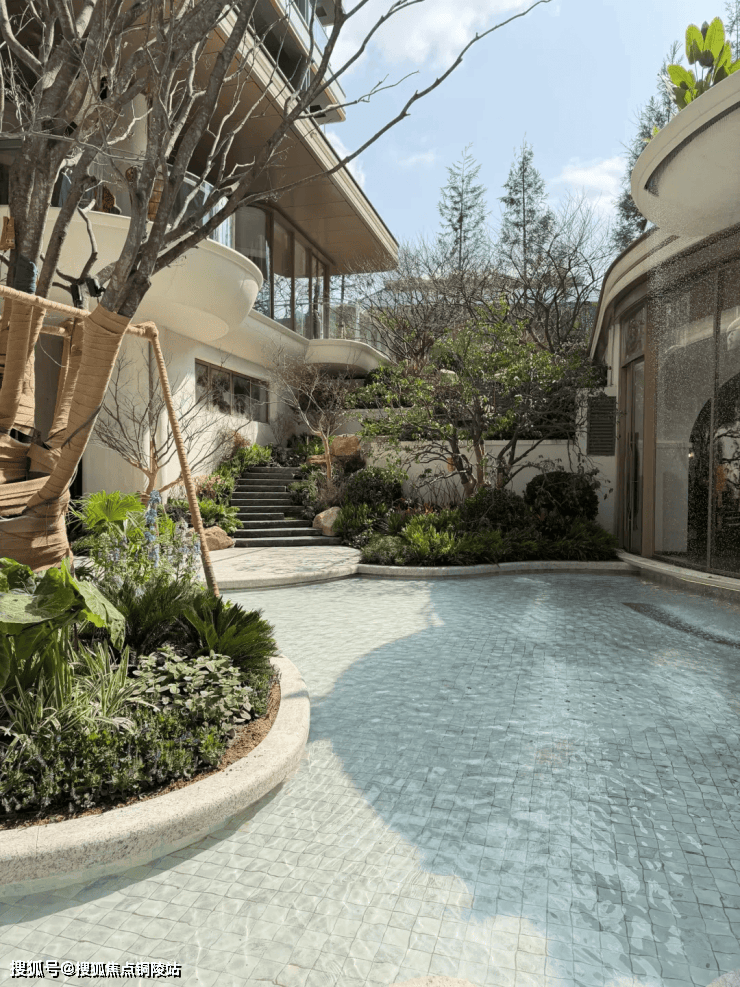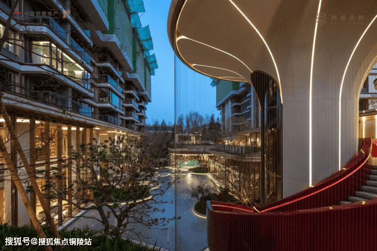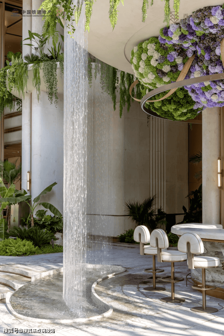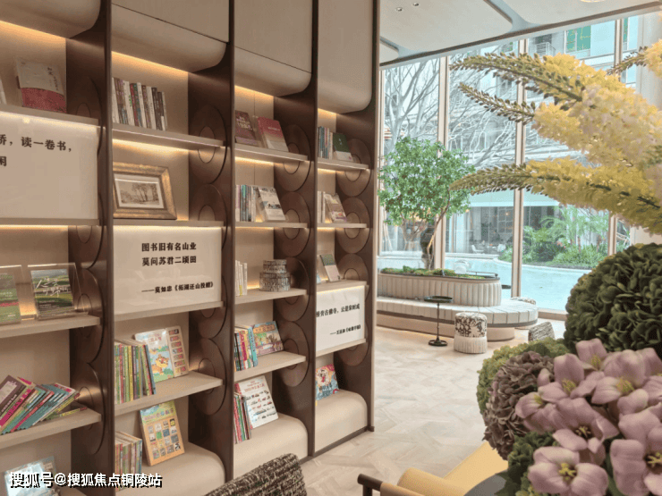 挑高约9米的双层书吧:一整面巨幕玻璃将水院景色框进室内,阳光穿过瀑布洒落书页,水声与翻书声轻轻应和。云间学堂与户外沙龙区:为孩子们提供席地而坐的阅读空间,也为社区音乐会随时上演提供舞台。此外,那座12米高的艺术水幕旋梯,堪称社区的“艺术坐标”,拾阶之间,光影流转,每一步都提醒你:生活,值得被认真对待