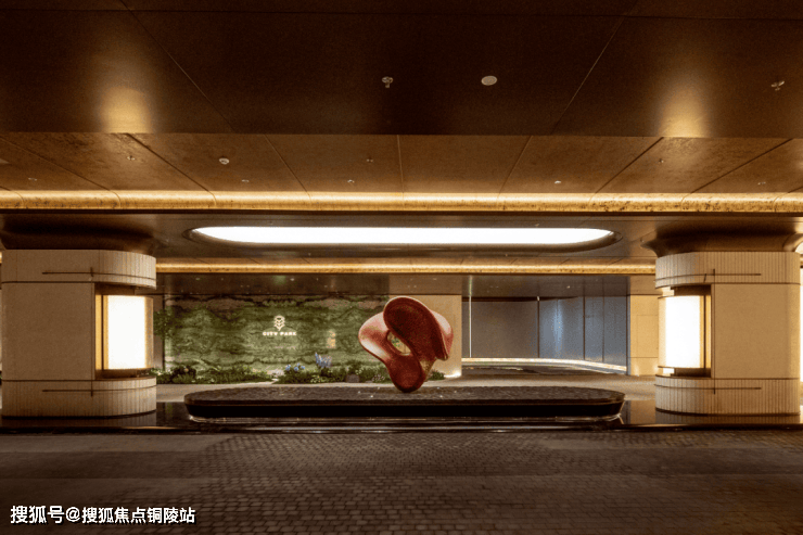 车库车马厅,地库入口对标伦敦TheWhiteley酒店中央车站,挑高约3.6米,环岛落客区、伊万翡翠奢石墙面、手工密拼弹石地面,地上地下双动线均享同等尊崇。