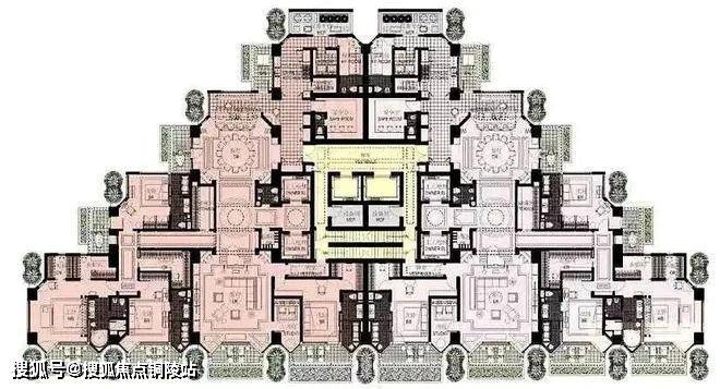 外部设计已经足够令人震撼,内部户型更是壕到无法想象。独特的金字塔设计,仪式感超强。所有住宅单元都尽可能南向,拥有360°采光的同时不浪费一丝一毫的江景。