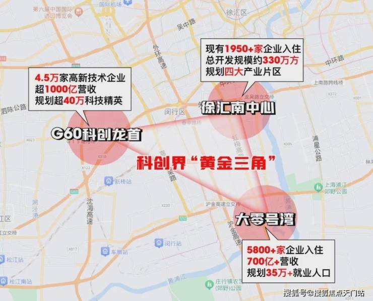 G60科创龙首与徐汇南中心、大零号湾,被业界喻为科创界的”黄金三角“天花板!
