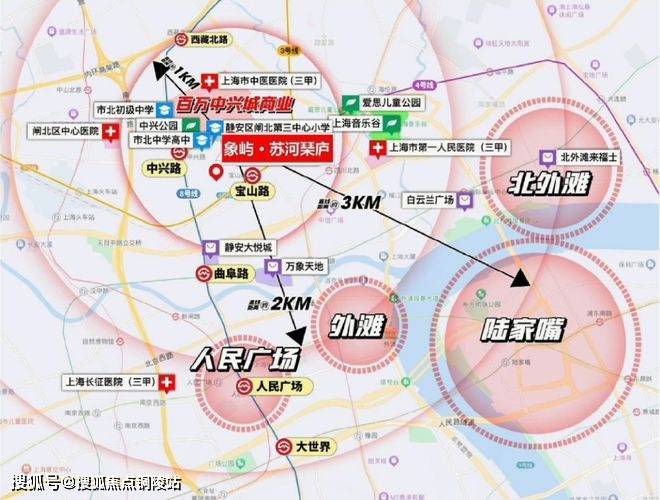 【商业】直线约300米可达中兴公园和交通公园,距静安大悦城、万象天地、宝格丽酒店、苏河湾世界级滨水商务区等配套直线约1KM,距人民广场直线约1.5KM,周边聚集了超21家跨国公司地区总部,约3KM国际生活圈,涵盖陆家嘴、人民广场、静安寺、南京路、外滩、新天地等繁华CBD都市生活圈。