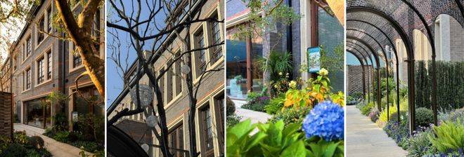 风貌别墅延续了上海石库门风格。青砖黛瓦,红色腰线,南向面宽最大的大概约15米左右。从一扇门、一扇窗中保留和创新,同时区别“里弄式”别墅的小格局、少采光、多浪费;空间布局灵活,满足不同高阶家庭生活需求,递呈出静安苏河畔难得的海派浓荫别墅。