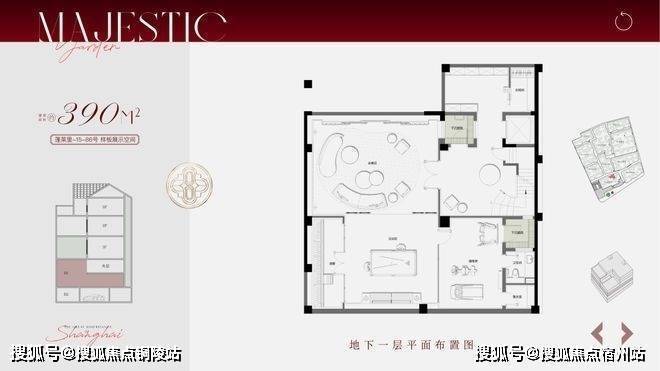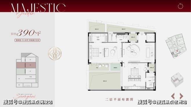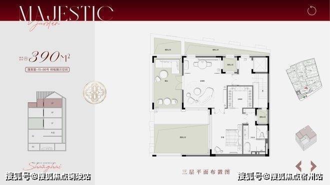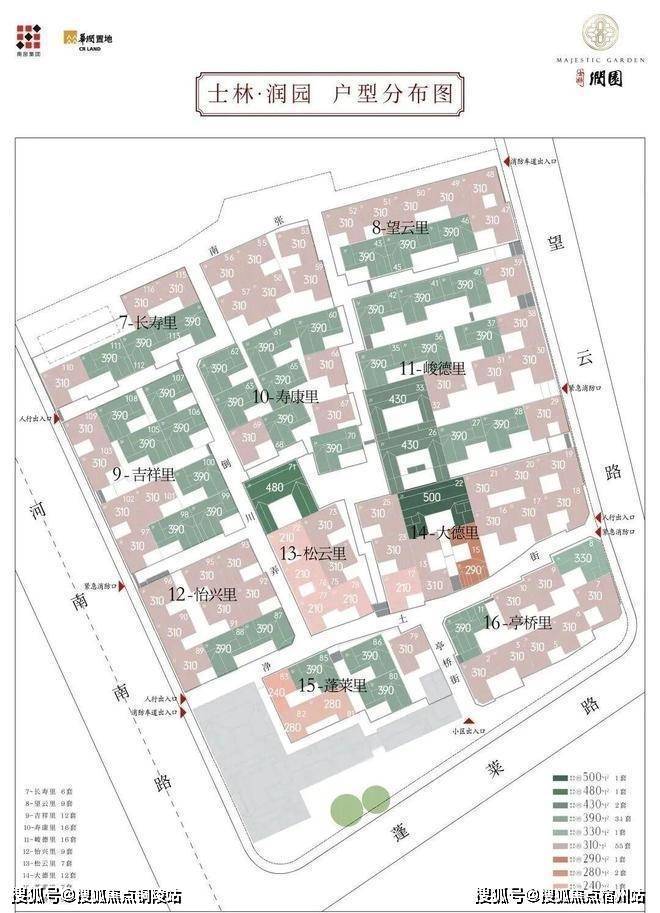 合院地上三层,面积段约270-500㎡,计合院82套。