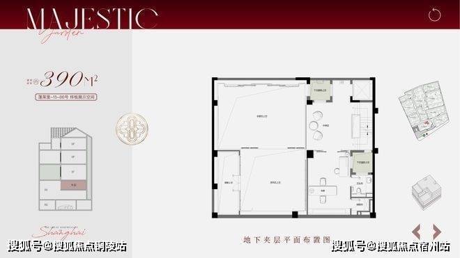 叠拼面积段约195-310㎡,分为1-2F下叠、3、4、5F为中间的平层面积236㎡,6-7F为上叠,计56套。