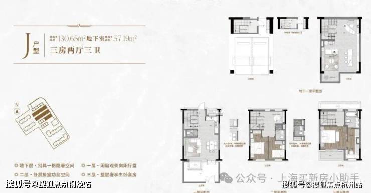 一楼和地下室主社交和志趣,二楼是子女的房间,三楼是主人休憩区。