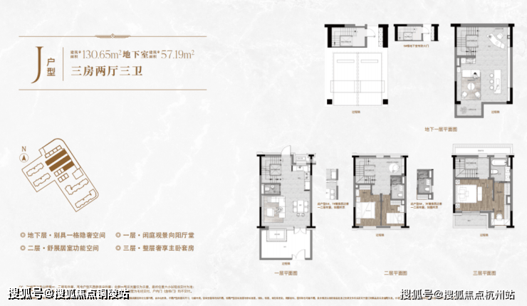 一楼和地下室主社交和志趣,二楼是子女的房间,三楼是主人休憩区。