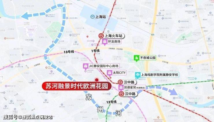 苏河融景整个小区由汉中路、长安路、普济路与恒丰路围合,临近汉中路地铁站和苏州河滨河景观带。苏河融景整个小区分2期开发,其中1号2号一期开发,其余楼栋二期开发。